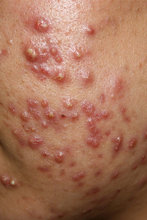 - Cystic lesions (painful, pus-filled lumps under the skin)